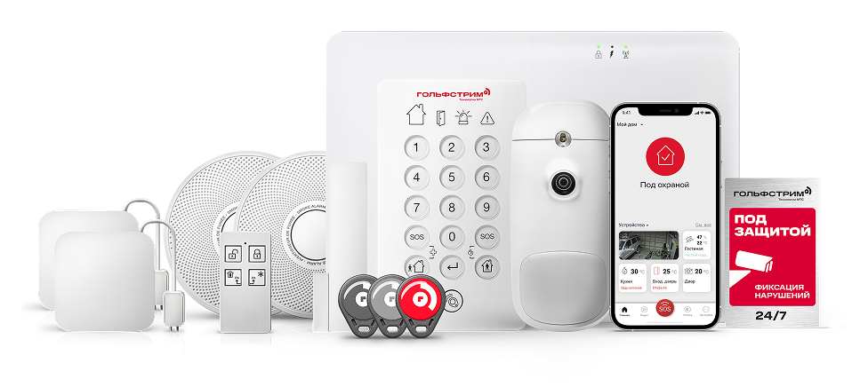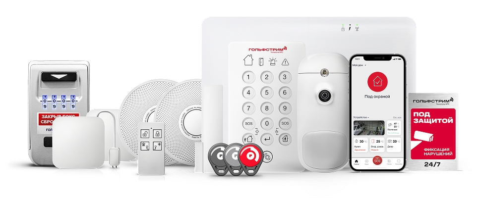Безопасность обеспечивают круглосуточная связь с Центральной станцией мониторинга и кнопка SOS, одним нажатием которой вы сможете быстро вызвать группу реагирования. Тревожная кнопка находится в мобильном приложении Гольфстрим (только для наших клиентов), на беспроводной клавиатуре охранной сигнализации, беспроводном пульте управления или является переносной в виде браслета или часов.